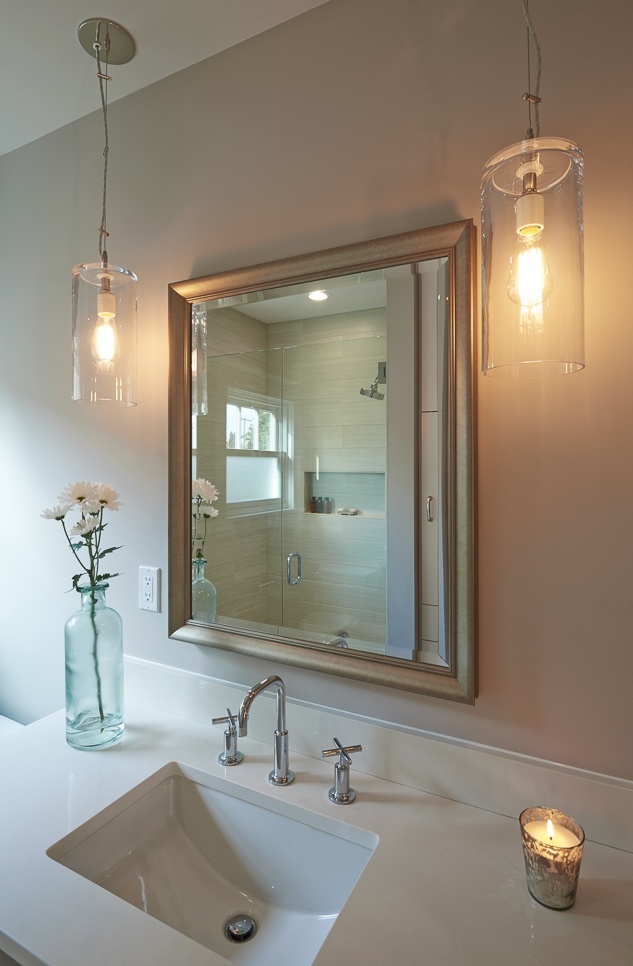 This Capitol Hill home for two busy professionals needed an update. Our design focus was to enhance the connections between the rooms on the first floor. The wall between the kitchen and family room was removed to create a bright interactive space, and a tiny short-staired staircase was reworked and opened to the lower hall. French doors in the family room now look out to the garden, and big, beautiful sliding pocket doors connect the kitchen and dining room. Two full bathroom remodels complete the first phase of this project. The design of a new second-story master suite will be the next phase.