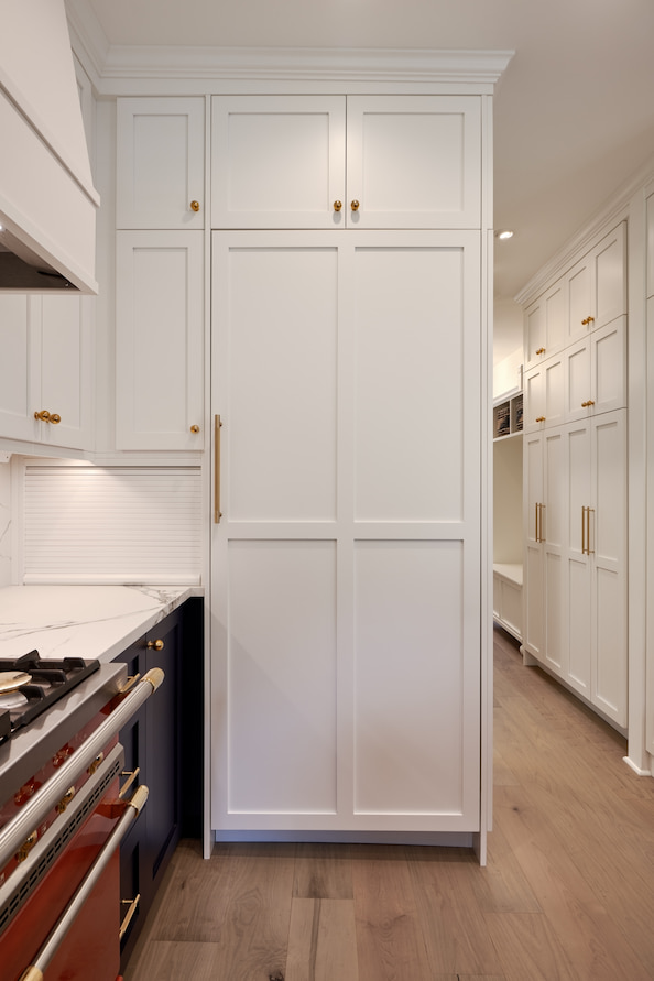 The family’s brand-new entryway leads you into a stunning new kitchen and dining area that’s full of clever storage to keep things tidy and organized. An expanded entryway with French doors makes it easy to go in and out from the off-street parking out back. Upstairs, the primary bedroom now has an ensuite bathroom and reimagined closet that seamlessly maximizes the space and function of the room. A new closet at the end of the upstairs hallway also blends in perfectly and provides even more storage for the family.
