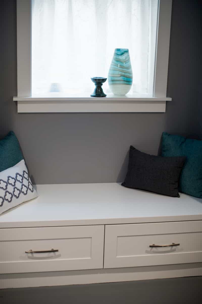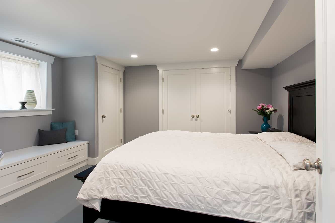 This Ballard couple's typical, old, dusty basement has been converted into a sanctuary. This full-basement renovation included a new master bedroom and bathroom, painted shaker, cabinetry, a new laundry room, and an office flex space. While the bright and airy space feels like a personal retreat for the homeowners, all the family action is still just a staircase away.