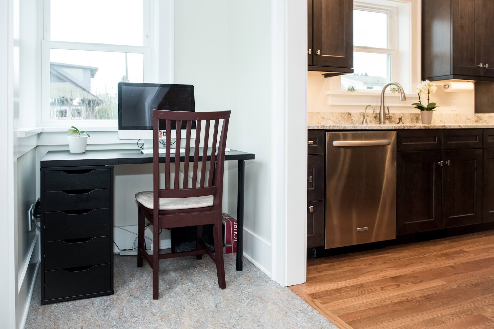 The original floor plan of this one-story U-District craftsman home was short on space and simply didn't fit our clients' lifestyle. The master bedroom was in the low-ceilinged basement, and the tiny dining room was disconnected from the kitchen. A new two-story bump-out addition provided the space for an expansive kitchen and dining room combination. On the new second floor, a private master suite with a wet-room shower and separate sitting area is a lofty retreat, bathed in natural light. Best of all, the new addition maintains the home's craftsman charm, incorporating original cedar siding and trim details.