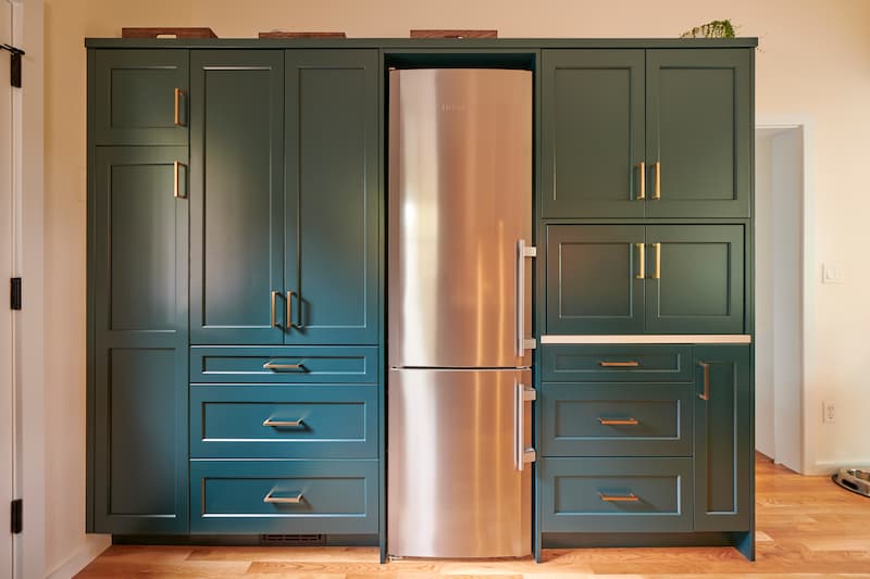 The transformation began with removing the old windows, appliances, cabinets, and kitchen flooring. Our team was able to extend the current hardwoods into the kitchen and refinish the floors throughout the entire first floor. Recognizing the need for enhanced storage solutions, we went added plenty of cabinets on both sides of the kitchen, and a peninsula that allows for extra storage and a great place to put food and drinks out while entertaining!